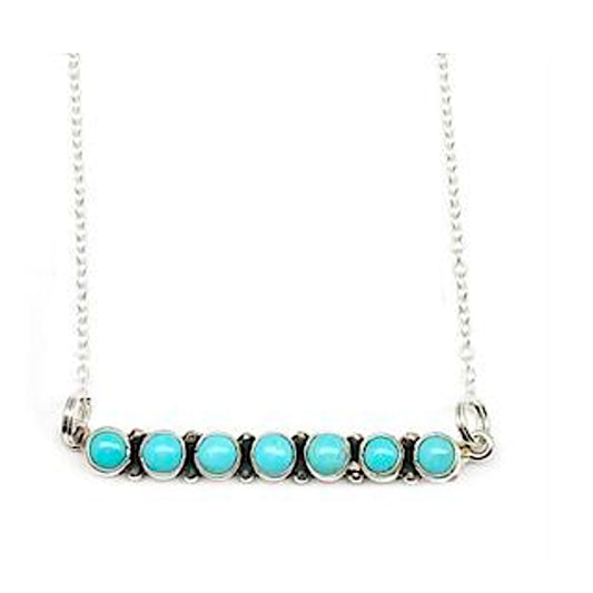 Zuni Sleeping Beauty Snake Eye Turquoise Bar Necklace Sterling Silver R. Chaco