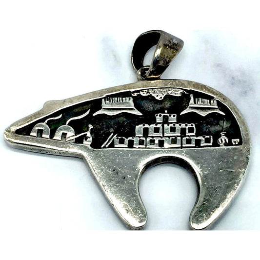 Navajo Turquoise Multi Stone Inlay Reversible Bear Pendant Sterling Silver