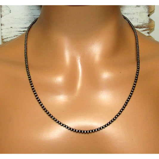 Navajo Pearls Necklace 3mm Sterling Silver Beads Necklace 18"L