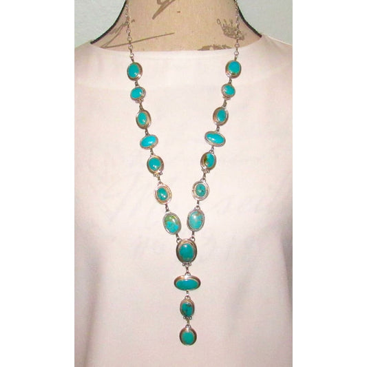 Navajo Royston Turquoise Lariat Necklace Sterling Silver K. Pino