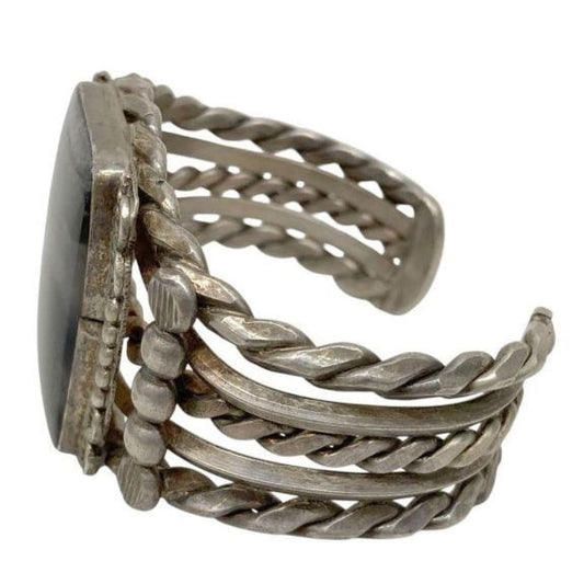 Massive Old Pawn Navajo Petrified Wood Cuff Bracelet Sterling Silver 75G