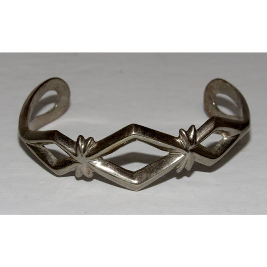 Vintage Navajo Sterling Silver Sand Cast Cuff Bracelet B. Yazzie