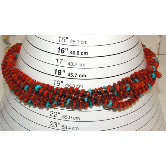 Santo Domingo Rolled Shell Orange Spiny & Turquoise Heishi Choker Necklace 18"L