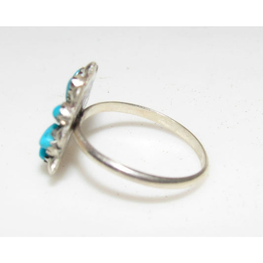 Vintage Zuni Snake Eye Turquoise Cluster Ring Size 7.5 Sterling Silver