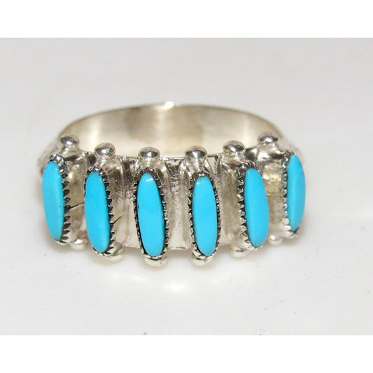 Zuni Sleeping Beauty Turquoise Ring Sz 7.5 Petite Point Design Sterling Silver