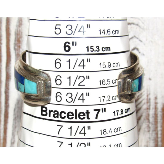 Massive Navajo Turquoise Lapis Inlay Cuff Bracelet Sterling Silver R. Brown