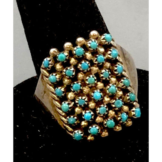 Old Pawn Navajo Turquoise Cluster Ring Sz 7 Sterling Native Vintage