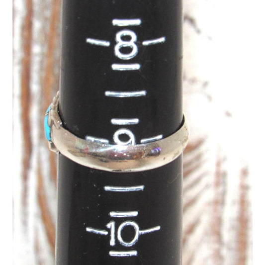 Zuni Turquoise Inlay Ring Sz 9 Sterling Silver M. Peynesta Native American