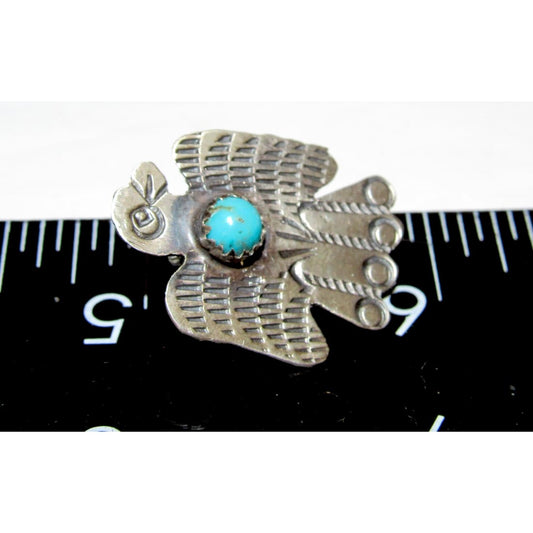 Vintage Navajo Thunderbird Post Earrings Sterling Silver Turquoise
