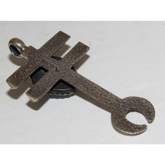 Navajo Alex Sanchez Petroglyph Nugget Pendant Sterling Silver Turquoise