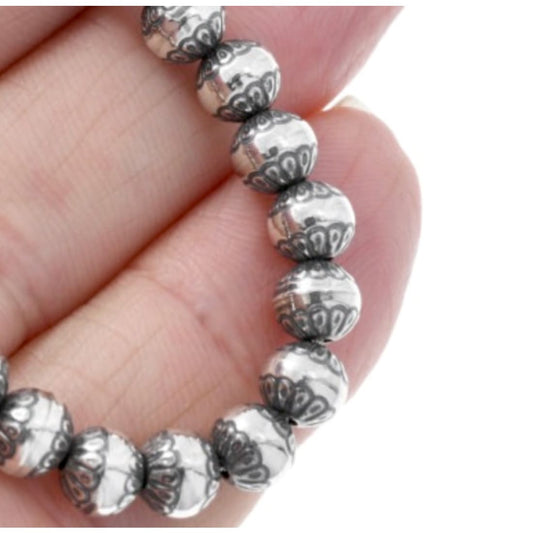 6mm Navajo Pearls Necklace Sterling Silver Stamped Beads Necklace 18"L