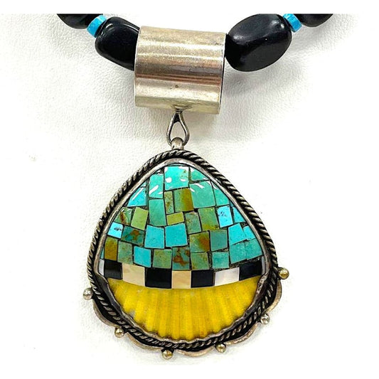 Joseph Tenorio Santo Domingo Onyx Necklace with Turquoise Pendant